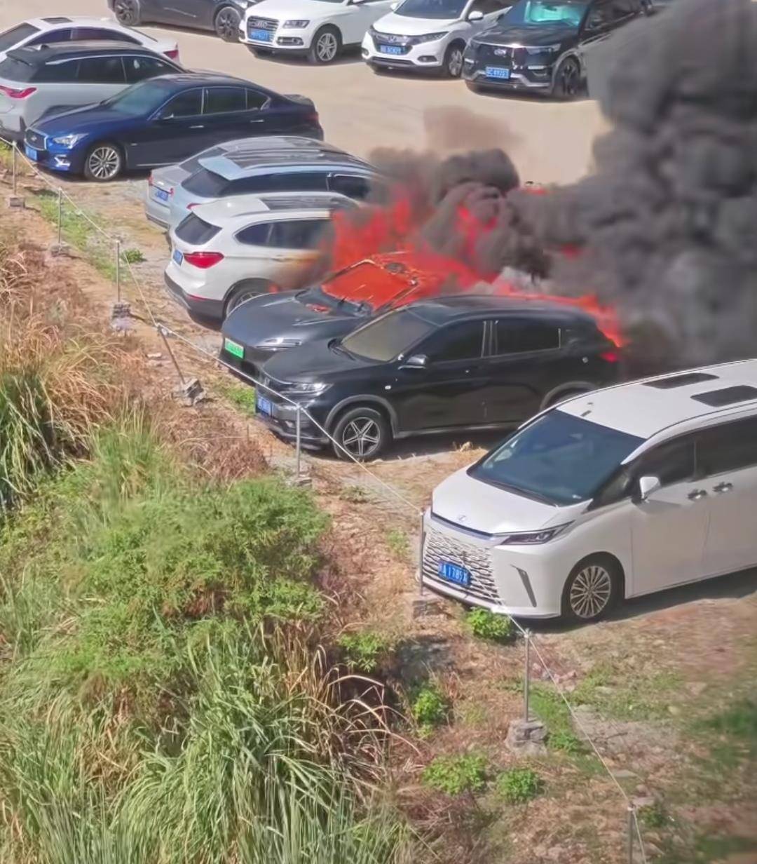 多段现场视频显示,最先起火的是停车场内的一辆阿维塔,火势发展很快,随后殃及附近多辆车。